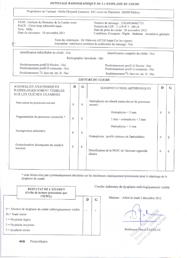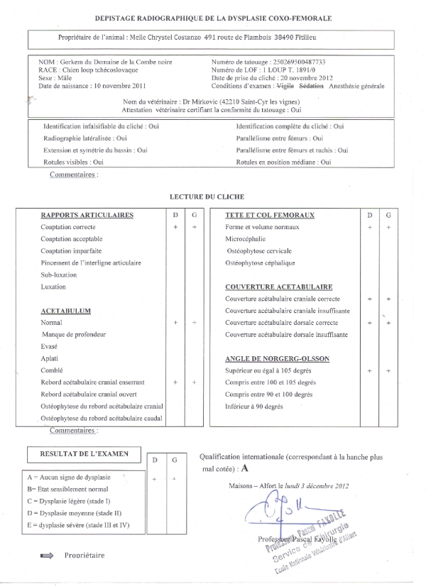 Résultats dysplasie de GORKEM