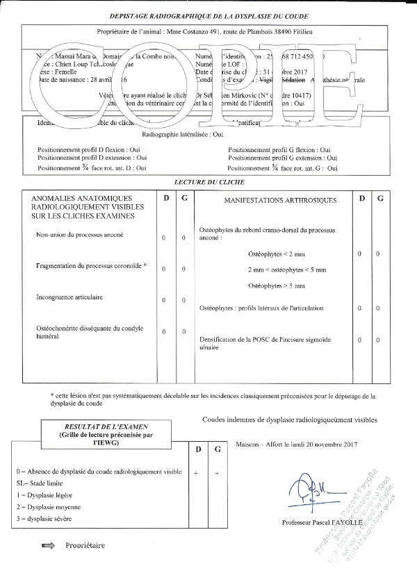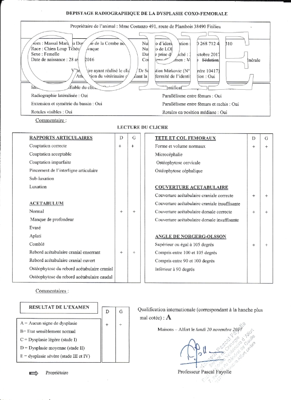 RESULTATS DYSPLASIE DE MASSAÏ MARA