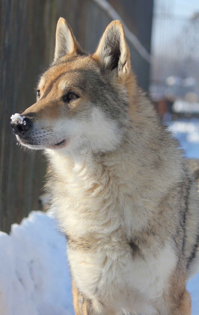 Un super caractére, il est posé et hyper calme, il est la fiertée de nos chiens loups !!! D'une fourrure impressionnante en plein hivers,magnifique regard, ambre clair, et de petites oreilles !! Il est toujours content ! Trés sociable avec les autres animaux, c'est un chien trés facile !!! un amour !!!!!!!!!!!! Il transmet à ses chiots, tout ses traits de caractére !!! Ainsi que son physique très lupoide Deux de ses filles sont CHAMPIONNE DU MONDE, sans compter tous les autres titres de ces descendants